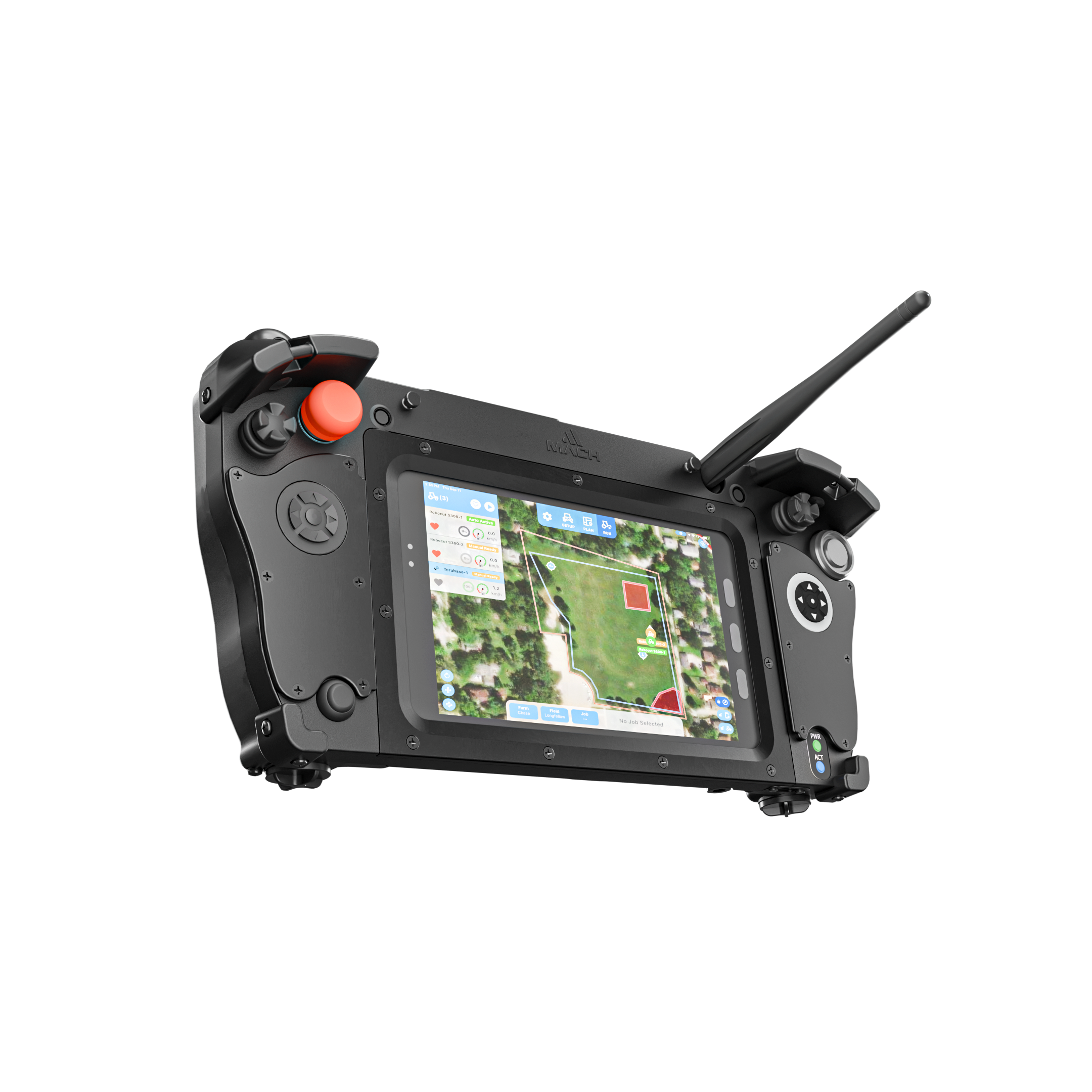 This cutting-edge, handheld solution features a fully customizable layout to control any number of different applications or machines. The advanced multi-machine capability allows an operator to seamlessly toggle between assets on the job site, yet can simultaneously E-Stop every machine on the mesh network for unparalleled safety and site-wide control. Leveraging a tablet based graphical user interface give you the flexibility to design specifically for your brand and machines.